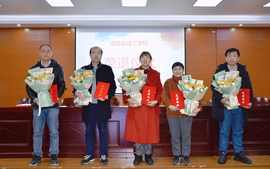 會議伊始,海鹽縣理工學(xué)校為今年的五位退休教師舉辦了榮退儀式。學(xué)校黨委書記宋海平、校長李俊為退休教師頒發(fā)了榮譽(yù)證書,獻(xiàn)上了鮮花。退休教師代表何永香校長作發(fā)言。何校長回顧了自己的三十七載職教緣,并對海鹽職業(yè)教育獻(xiàn)上了美好祝愿,對職業(yè)教育工作者給予了殷殷祝福。