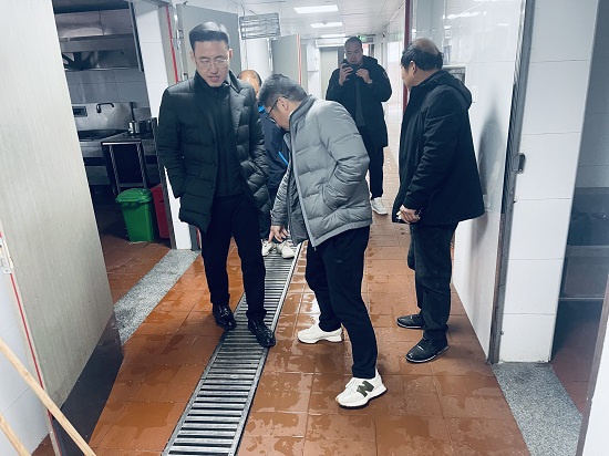 一行人走進(jìn)學(xué)校教工宿舍樓,查看消防安全。對(duì)照“三防設(shè)施”要求和“食品安全”內(nèi)容實(shí)地查看食堂,查看門窗、通風(fēng)口、排水管、防鼠板、地漏等處,只見擋鼠板、滅蠅燈、防蠅簾、篦子等都安裝到位,地面整潔,刀具、物品擺放有序,各種張貼齊全、標(biāo)識(shí)清晰,只是墻面與天花板由于年代久遠(yuǎn),略顯陳舊,各下水管道連接處密封圈缺少,當(dāng)即告知何聰聰與郭鵬程及時(shí)安裝。同時(shí)告誡師生就餐前,食堂人員還需對(duì)餐具、器具再次清洗;環(huán)境衛(wèi)生再作打掃。