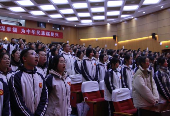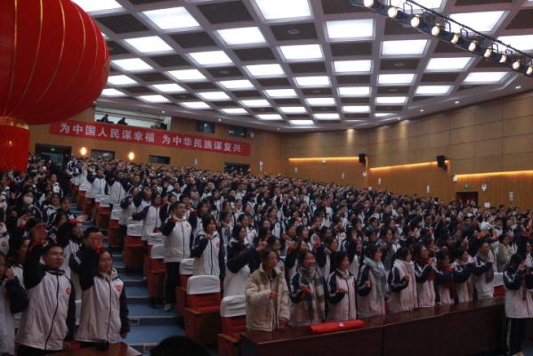 本次大會由鄭河南副校長主持,校黨總支書記范壽鵬、校長姚望良、副校長王海等校領導與高三年段全體師生共同參加。本次大會由八個莊嚴肅穆的議程組成,彰顯著全體師生團結互助的精神風貌。