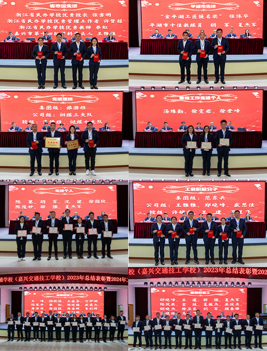 大會環節二,表彰各級各類先進。根據表彰文件,浙江省民辦學校優秀校長張雪明,浙江省民辦學校優秀管理工作者許賢超,浙江省民辦學校優秀教師蔡虹,嘉興市第十四批學科帶頭人王雅雅,徐雯君等26名嘉興市青年工匠,“金平湖工匠提名獎”張偉華,平湖市十佳教練員胡軍、夏杰軍,先進班組旅游組、訓練三大隊、汽修組、訓練七大隊,集團級優秀共產黨員湯珠勤,集團級先進個人張正其、周峰,集團級優秀宣講員徐雯君,校級先進個人陸蕙、胡軍、沈健、徐國校、陳俊妙、邵強,工會先進積極分子范東兵,王雅雅、鄭曉峰、盛思佳,許妍燕、王建、馬星飛,王峰等29名美麗教職工分批接受表彰,校領導為他們頒獎。