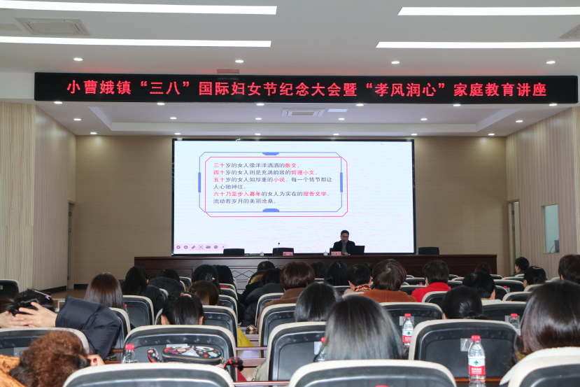 3月7日下午,由余姚小曹娥鎮(zhèn)婦聯(lián)和小曹娥成校聯(lián)合主辦的“小曹娥鎮(zhèn)‘三八’國際婦女節(jié)紀念大會暨‘孝風潤心’家庭教育講座”在鎮(zhèn)報告廳舉行。來自各行各業(yè)各戰(zhàn)線的八十余位婦女代表共聚一堂,慶祝屬于自己的節(jié)日。
