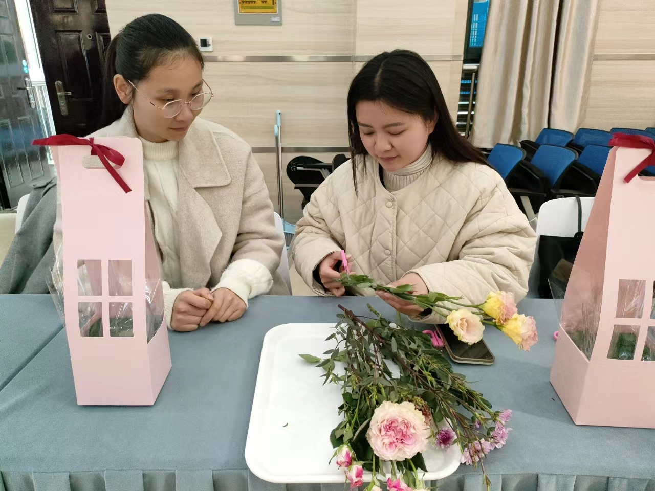活動現場,花藝老師首先向大家介紹了插花藝術的起源、發(fā)展、花卉的選擇、搭配、修剪等方面的知識,隨后逐步展示插花方法。在老師的引導下,在芬芳的花香中,大家按照個人喜好進行色彩搭配,溝通插花技巧。在愉快的氛圍中,一束束錯落有致、創(chuàng)意十足的花束作品呈現出來,令人賞心悅目,為婦女節(jié)獻禮。