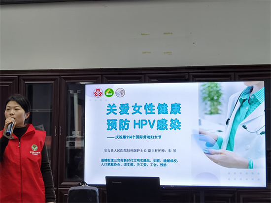 3月6日,安吉縣社區教育學院遞鋪分院組織HPV預防講座下鄉,分別送教到鶴鹿溪村和三官村,來自兩個村的40余名婦女代表們參加了本次活動,邀請了安吉縣人民醫院的護士長朱琴授課。