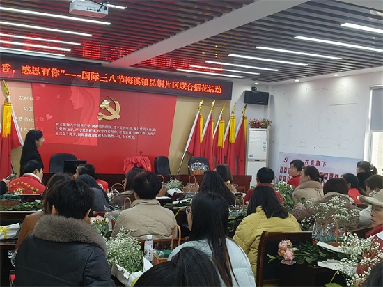為慶祝國際“三八”婦女節,3月8日,安吉梅溪社區教育分院舉辦插花活動。