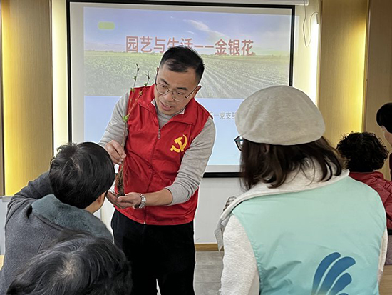 春風(fēng)楊柳萬千條,綠水青山煥笑顏。為科普傳統(tǒng)醫(yī)藥金銀花,宣傳綠色環(huán)保觀念,豐富社區(qū)居民休閑生活,近期,湖州市現(xiàn)代農(nóng)業(yè)技術(shù)學(xué)校黨總支和康山街道星匯半島社區(qū)、愛山街道利民社區(qū)、利民社區(qū)婦聯(lián)、月河街道幸福鄰里中心、吳興區(qū)老干部局、吳興區(qū)南太湖居家養(yǎng)老服務(wù)中心等單位合作開展《園藝與生活》的公益培訓(xùn)。為社區(qū)居民送去綠意,送去美好。