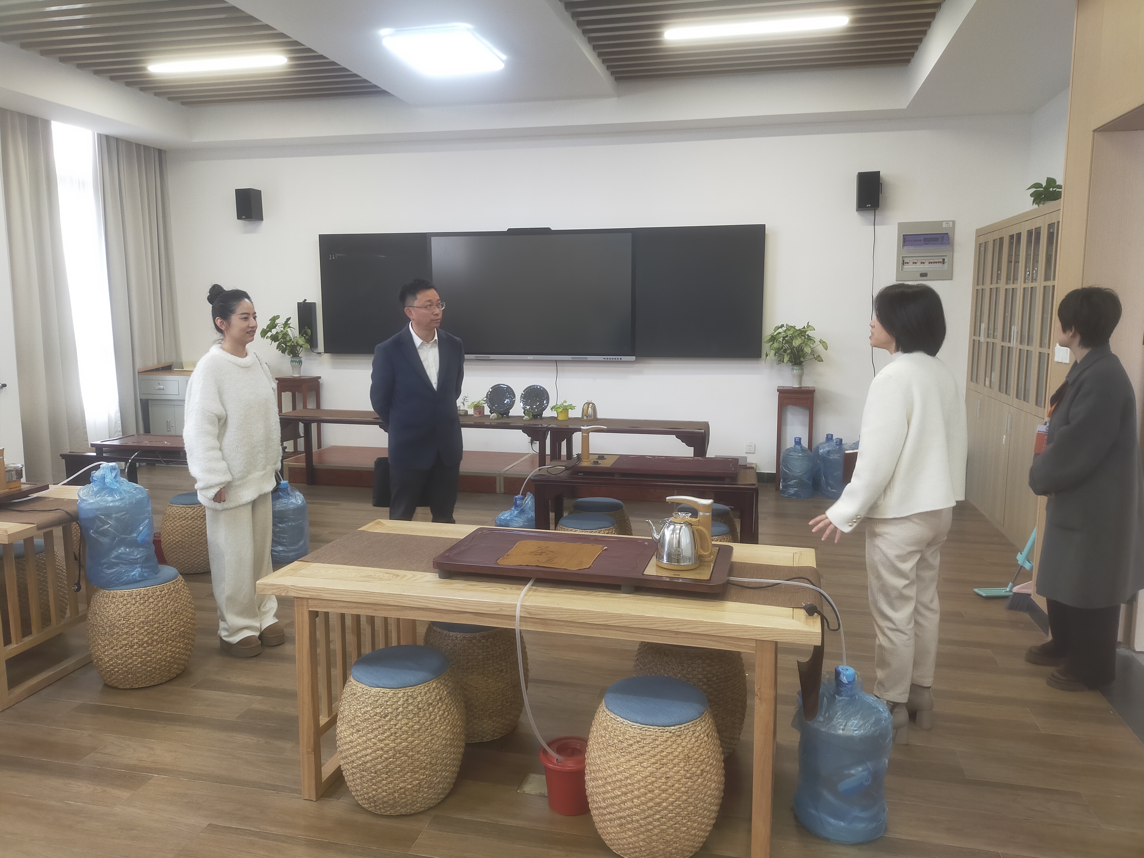 座談會前,林建華與葉艷芳一行在洞頭社區學院領導干部的陪同下,參觀考察洞頭區職教中心的藝術樓、體育館等職業技能培訓功能室,針對百島文旅產業培訓對接工作進行實地調研。