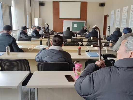 培訓(xùn)老師施國(guó)旗正在為學(xué)員們專心授課。施老師一遍遍示范,領(lǐng)著學(xué)員們一遍遍齊奏。練習(xí)間隙,學(xué)員們踴躍提問(wèn),現(xiàn)場(chǎng)學(xué)習(xí)氣氛濃烈,這批學(xué)員年齡跨度大,最小的65歲,最大的90歲,大家干勁十足。施老師根據(jù)學(xué)員們的不同功底因材施教,及時(shí)給予個(gè)別輔導(dǎo)。循序漸進(jìn)的教學(xué)讓學(xué)員們易于接受,大家都學(xué)得十分投入和認(rèn)真,紛紛表示要珍惜此次學(xué)習(xí)機(jī)會(huì)。