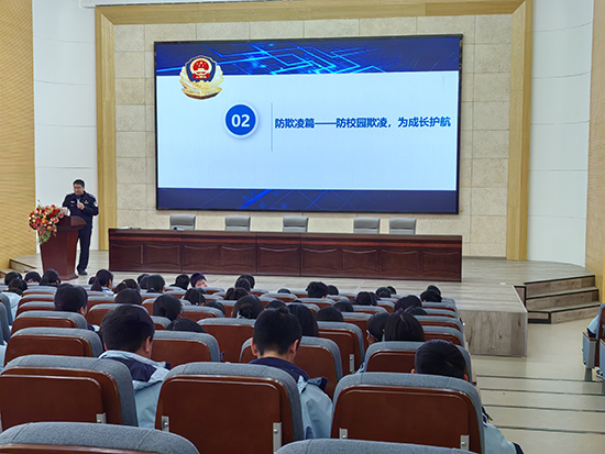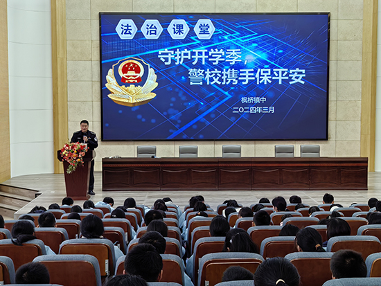 3月13日下午,諸暨市楓橋派出所副所長趙信在楓橋鎮(zhèn)社區(qū)教育學(xué)校的邀請下來到楓橋鎮(zhèn)初級中學(xué),為七年級10個班級的學(xué)生作關(guān)于“反詐騙和防校園欺凌”的主題講座。