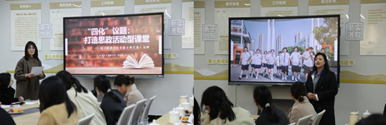 活動伊始,藝校周婷婷老師開設“接納和完善自我”思政公開課。周老師結合學生專業成長發展,采用活動型課程形式,圍繞“閱己”“悅己”“越己”開展教學活動,課堂氣氛活躍,落實了學科核心素養目標。藝校沈晨怡老師給大家展示了一堂獨具特色的班會課“服裝中的黨史記憶”,將黨史與服裝專業特色相結合。課堂精彩紛呈,激發了學生的學習興趣。