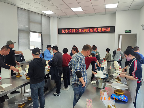 此次研修主題為進一步發(fā)揮“共同富裕”縣域樣本成校職能暨DIY烘焙培訓。培訓第一階段,全縣所有成校教師在孝豐成校報告廳集中,孝豐成校校長董正新主持并介紹孝文化以及本次活動安排。隨后,在董校長的帶領下,教師們走訪了孝豐鎮(zhèn)南門老街,探訪了千年古鎮(zhèn)文化。第二階段為DIY烘焙培訓,教師們在安吉縣99Cake甜品工作室楊晹老師的指導下,打發(fā)奶油、固定形狀、均勻抹面、水果裝飾、裱花等每個環(huán)節(jié)認真專注,興致盎然,發(fā)揮創(chuàng)意,歡聲笑語伴隨著奶油香甜的氣息,大家互相交流著各自的制作感悟,體驗著DIY的制作樂趣。在輕松愉快的氛圍中,教師們不僅釋放了工作壓力,更增進了彼此間的交流。經(jīng)過一番動手制作,一個個精美的蛋糕新鮮出爐,現(xiàn)場氛圍熱烈。