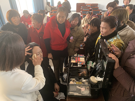 “云想衣裳花想容,清風拂檻露華濃……”“妝罷低聲問夫婿,畫眉深淺入時無?”,三月陽春,磐安縣新城中心成人(社區)學校笑語喧嘩,新城老年學堂“藥鄉紅”藝術服務團的骨干們歡聚一堂,以“遇見更‘專業’的自己”為主題的舞臺妝造特訓活動在此舉行。