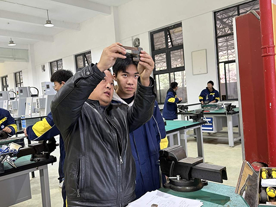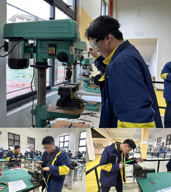 3月19日上午,磐安縣職業教育中心的機電實訓中心,熱火朝天,“叮當”聲此起彼伏,機械專業的學生們正在根據工具鉗工操作技能考核要求打磨磨具。