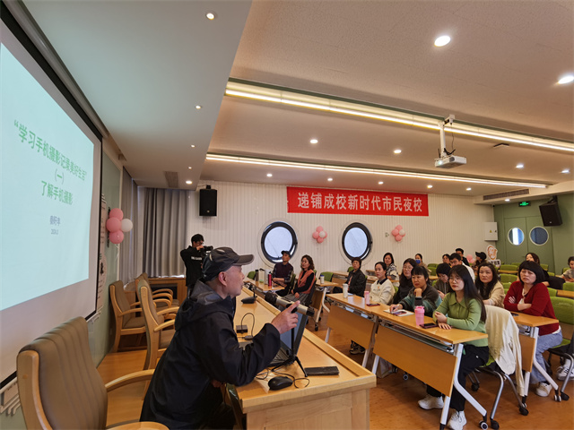 3月24日下午,安吉縣社區教育學院遞鋪分院新時代市民夜校手機攝影班開班,來自遞鋪街道各個村、社區的50多位市民參加培訓,邀請了安吉縣攝影家協會會長秦盱豐授課。