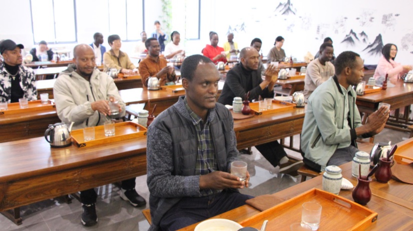 茶專業教師朱紅一為大家上了一堂開化龍頂茶沖泡體驗課。她詳細介紹了開化龍頂茶的歷史淵源、制作工藝以及品鑒方法,并親自演示了龍頂茶的沖泡過程。留學生們認真聆聽并現場學習、體驗了開化龍頂的沖泡技藝。”開化龍頂茶葉在杯中的造型很美麗,聞著特別清香。“聞著茶香,品著新鮮沖泡出的開化龍頂,留學生們贊不絕口。
