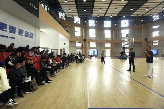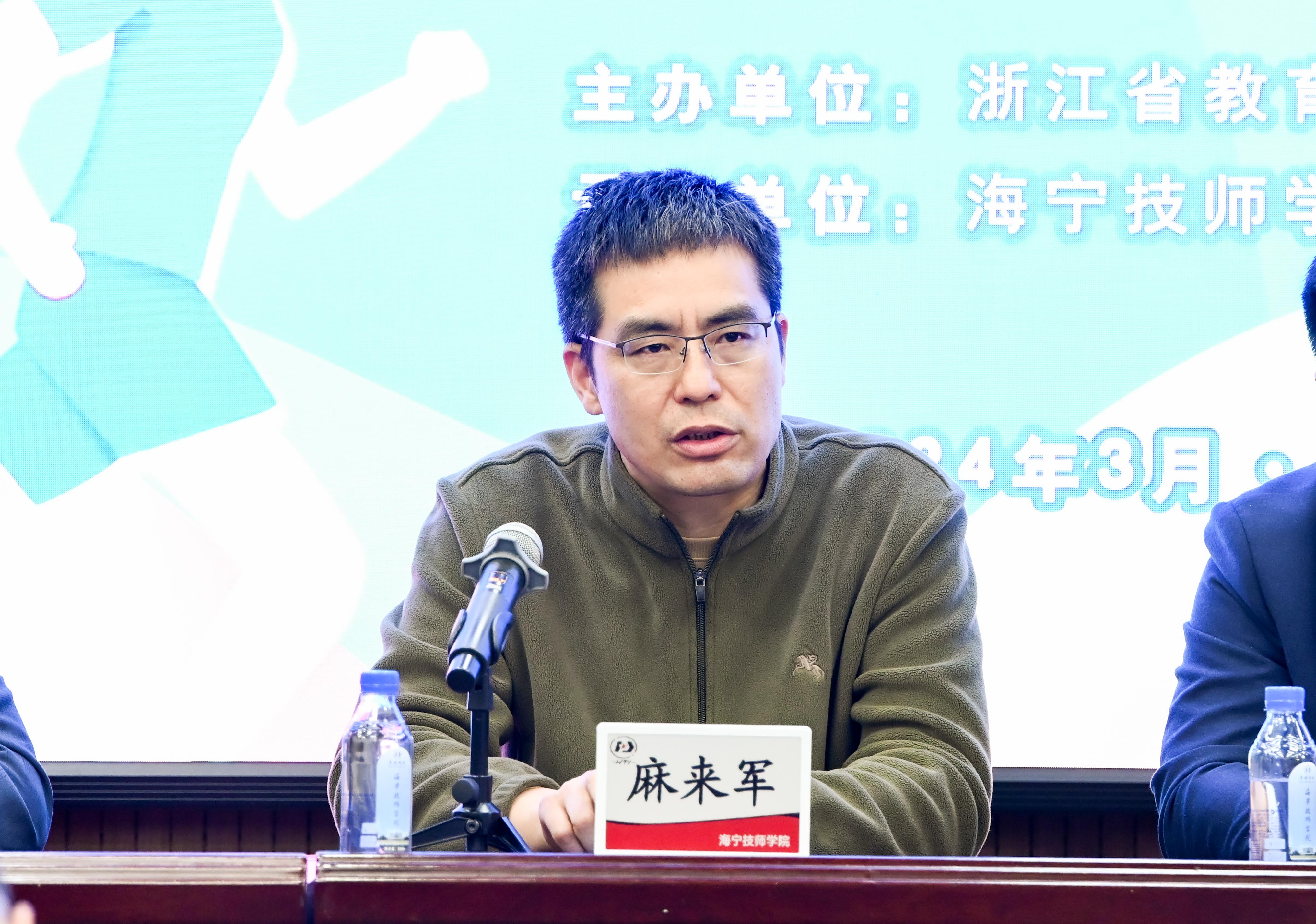 海寧技師學院黨委書記、院長陳海鋒介紹了學校辦學理念及學校體育工作。陳院長表示,此次活動是對學院體育工作的肯定和鼓勵,也是對今后工作的鞭策。學院將以承辦本次活動為契機,虛心接受各位專家和同仁的寶貴建議,進一步加強學校體育工作,厚植高技能人才成長沃土,為人才隊伍建設(shè)貢獻海技力量。