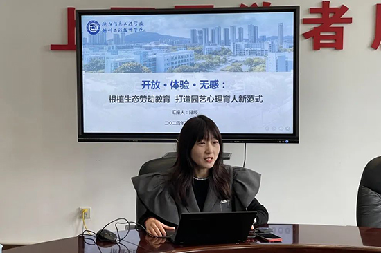 在2號(hào)會(huì)議室,陸婷為來賓們作了一場(chǎng)題為“根植生態(tài)勞動(dòng)教育打造園藝心理育人新范式”的專題匯報(bào)。她詳細(xì)介紹了學(xué)校如何通過生態(tài)勞動(dòng)教育與園藝心理育人相結(jié)合的方式,為學(xué)生提供一個(gè)更加健康、和諧的學(xué)習(xí)環(huán)境。