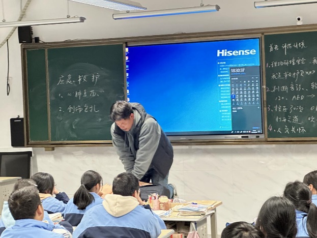 學校邀請具有救護師資質的老師對各班同學開展急救知識專題培訓,通過教師講解、現場演示的方式,幫助同學們了解心肺復蘇應急救護知識,掌握基本急救技能,提高學生的應急安全意識和自救互救能力。
