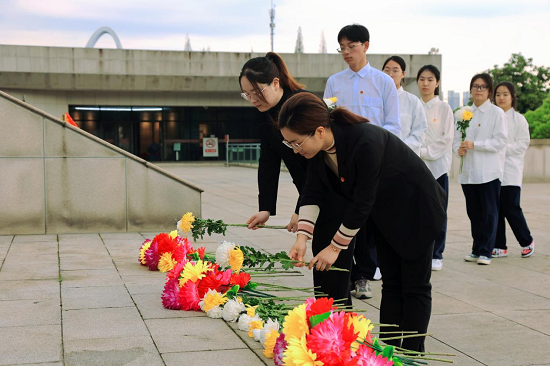 全體師生深刻默哀緬懷革命烈士豐功偉績;敬獻鮮花,寄托對先烈的哀思。繞紀念碑一周,瞻仰烈士風采。