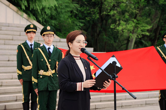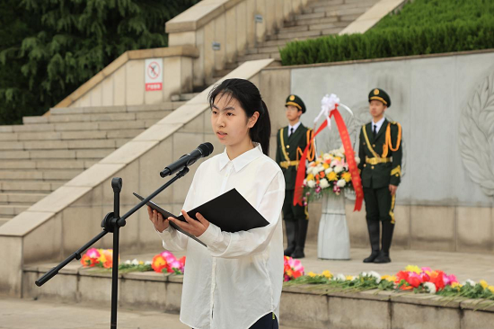 學生干部代表莫語悅同學在紀念碑前發言:“勿忘昨日苦難輝煌,無愧今日使命擔當,不負明日偉大夢想。”作為新時代青年,我們要繼承先烈遺志,學習先輩們不屈不撓,艱苦奮斗的革命精神,為民族振興,國家富強而努力奮斗。