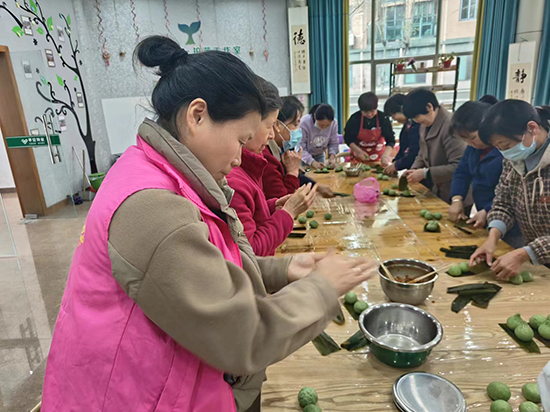 雖然很多人都是第一次制作青團,動作不太嫻熟,但大家都很享受制作過程,動手體驗了一把手工青團。社區老年人朱阿姨表示,以往家里吃的青團都是從外面購買的,自己沒有制作過這類食品,通過此次活動,不僅學會了自己做青團,還用實際行動傳承著中華民族傳統文化,以后可以根據家人的口味包上不同的餡料,太有意思了。