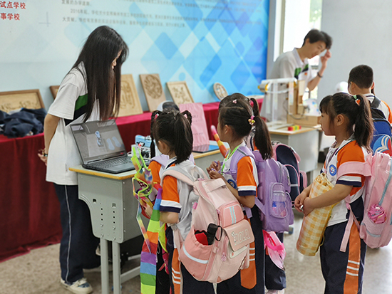 “小可愛”們首先來到學(xué)校的實(shí)訓(xùn)樓參觀,用探究的眼光觀察著實(shí)訓(xùn)室里的各種專業(yè)設(shè)備。為了迎接他們的到來,學(xué)校的創(chuàng)客小達(dá)人們還展出了自己的創(chuàng)意作品。看到“超能小球”、智能機(jī)器人等科技感滿滿的作品,小朋友們一下子化身為“好奇寶寶”,他們饒有興致地簇?fù)磉^來,津津有味地聽著大哥哥、大姐姐的講解,近距離地體驗(yàn)到了科技創(chuàng)意的魅力。