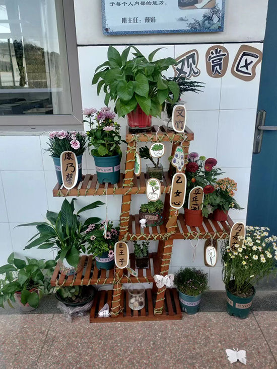 校園里,同學(xué)們?nèi)缁鹑巛钡夭贾冒嗉?jí)綠植角,由此營(yíng)造環(huán)保、綠色、美麗的班級(jí)氛圍,從而讓綠色走進(jìn)教室、融入校園。