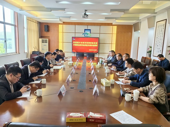 4月12日,紹興市教育局職成教處處長商飛鵬一行7人,來到諸暨市職教中心進行諸暨職業教育高質量發展實地調研。參與本次調研活動的還有諸暨教體局副局長沈寶偉、職教科科長、四所職業學校領導、教務處主任等相關人員。