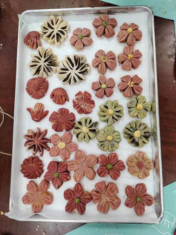 桃花酥是一道典型的傳統中式點心,屬于酥皮點心中的一種。桃花酥粉色的外觀讓人看到眼前一亮,模擬花瓣形狀做出來的點心,外皮酥脆香甜,餡料細膩綿軟。豬油混合面皮,經過簡單的包裹、搟皮和包餡,再經過高溫烘制,就能吃到了。在烘烤的過程中,豬油的香氣溢出,相當誘人。酥皮點心特別受長輩們的歡迎,一口酥掉渣的桃花酥,配上一口熱茶,簡直是完美的下午茶。