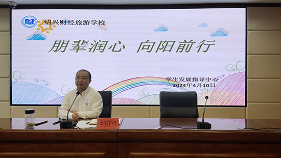 4月10日下午,紹興財經旅游學校開展了第一期朋輩心理互助培訓講座。副校長葉方便和政教處主任劉正偉擔任本次培訓主講人,由各班班長、心理委員等學生組成的朋輩心理互助成員參加講座。