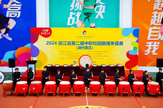上午9時,比賽在學校鼓樂隊的《戰鼓》中拉開帷幕,戰鼓敲出了豪邁奔放的氣勢,敲出了對本次比賽的熱烈期盼。浙江省青少年體育運動聯合會會長鮑學軍,湖州市教育局黨委副書記、副局長黃桂眾,浙江省青少年體育運動聯合會副會長羅倫,湖州市教育局職業教育與成人教育處處長吳小健,市教育局德體藝處處長洪敏,市教育局職業教育與成人教育研究中心主任閔惠敏,浙江綠恒谷體育產業有限公司銷售總監倪立峰,浙江信息工程學校·湖州工程技師學院黨委書記、校長崔燕榮,跳繩世界冠軍、裁判長郭思化出席開幕式。開幕式由浙江信息工程學校黨委委員、副校長朱曉慧主持。