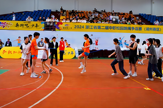 為貫徹實施體教融合,增強中職學生體質健康,提高學生體育運動興趣,培養學生團結協作的精神,4月14日上午,2024浙江省第二屆中職校園跳繩爭霸賽(湖州賽區)在浙江信息工程學校·湖州工程技師學院舉行。本次活動由浙江省青少年體育運動聯合會、浙江省教育廳職成教教研室聯合主辦,來自市內中職學校的7支代表隊共110多名選手參賽。
