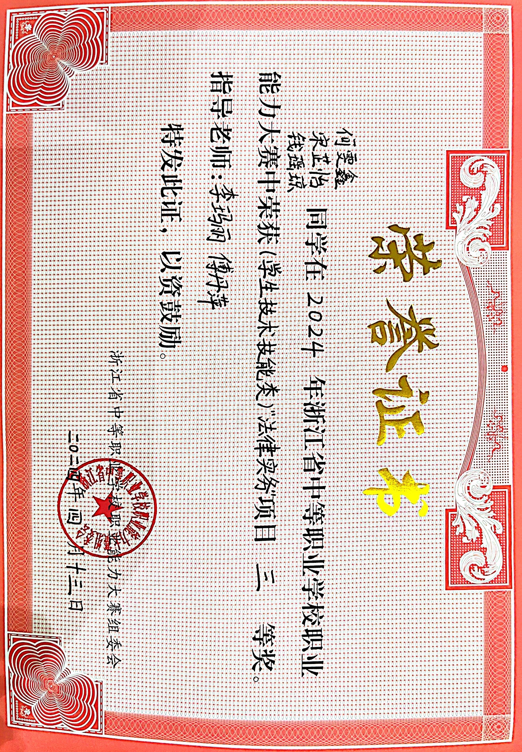 4月13日,2024年浙江省中等職業(yè)學(xué)校職業(yè)能力大賽(學(xué)生技術(shù)技能類)“法律實務(wù)”項目在浙江經(jīng)濟職業(yè)技術(shù)學(xué)院舉行。此次競賽由浙江省教育廳主辦,共有來自全省13支隊伍參賽。經(jīng)過激烈角逐,紹興財經(jīng)旅游學(xué)校法律實務(wù)代表隊獲得第5名的成績。