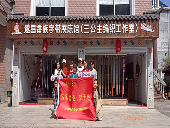 接下來,團(tuán)隊(duì)前往了遂昌縣云峰街道古亭村的“遂昌畬族字帶展陳館”。在這里,他們詳細(xì)了解了畬族織帶的演變歷程和藝術(shù)特色。展陳館內(nèi)的豐富展品讓參觀者們感受到了畬族文化的博大精深。大家紛紛駐足觀賞,拍照留念,并與館內(nèi)工作人員深入交流,共同探討如何更好地傳承和發(fā)揚(yáng)畬族彩帶編織技藝。