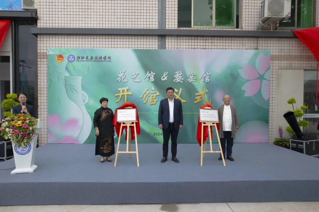 4月18日上午,浙江交通技師學院星行·花藝館&婺窯館開館儀式在主席臺后方順利舉行。國家工藝美術大師、婺窯非遺傳承人陳新華,花藝大師何小紅,金東區人社局副局長趙萃,金華市教育局校園安全與體衛藝處處長肖金澎,以及校黨委書記、校長李忠躍,黨委委員、副校長應建明,黨委委員、副校長葉智勇、相關部門負責人應邀出席活動。