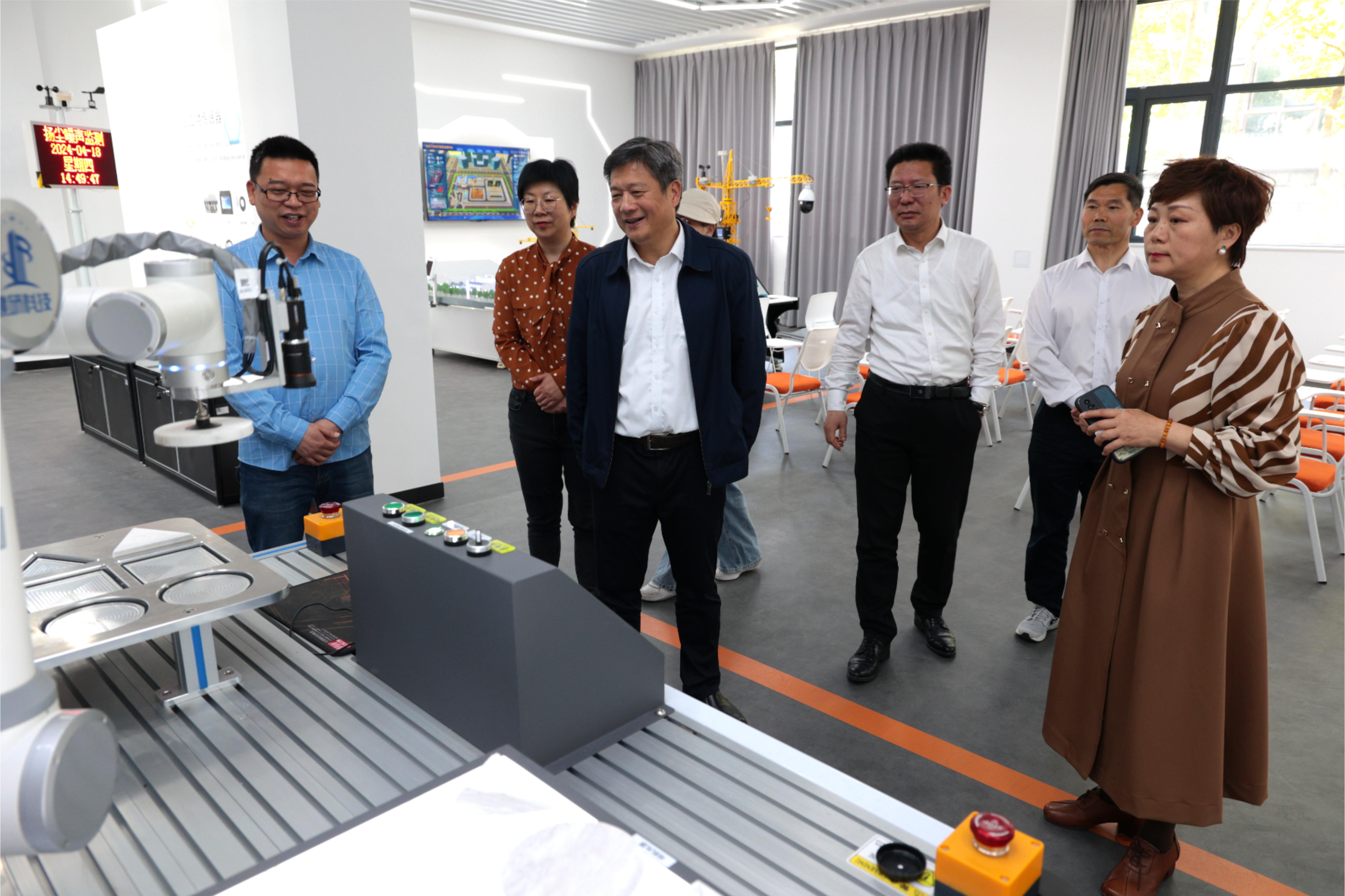 馬雪騰一行實地參觀了學校建筑安全體驗中心、美創(chuàng)工坊、掐絲畫實訓室等場所,調(diào)研學校實訓基地建設情況,并聽取了范曉春關于學校整體辦學情況、取得成績和發(fā)展目標的匯報。