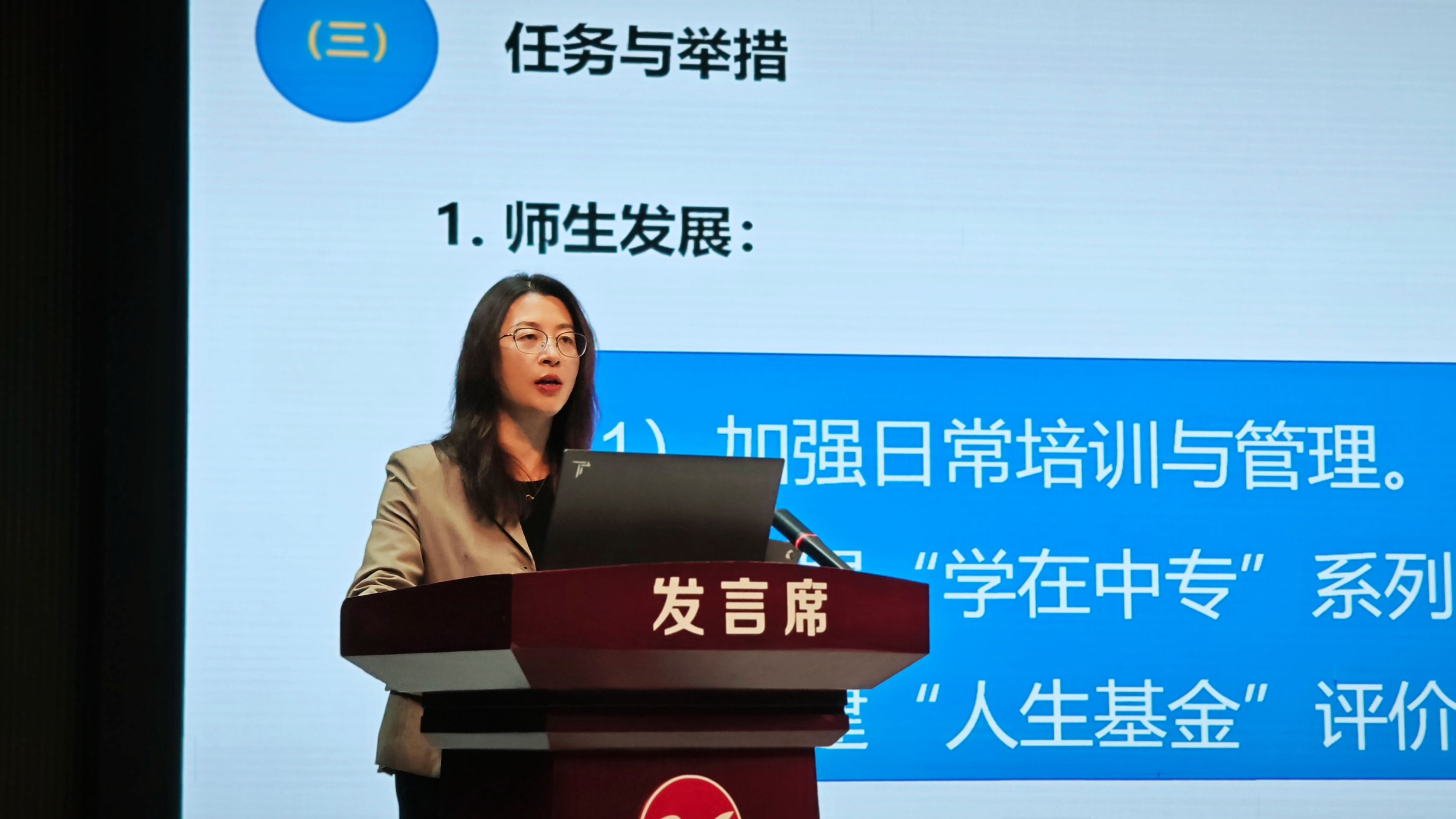 紹興市中等專業學校黨委書記於芳,就開展主題為 《信息化標桿校建設的實踐探索》的講座,分享了紹興市中等專業學校的基本情況、發展理念、發展思路等,為中職學校標桿校建設提供思路。