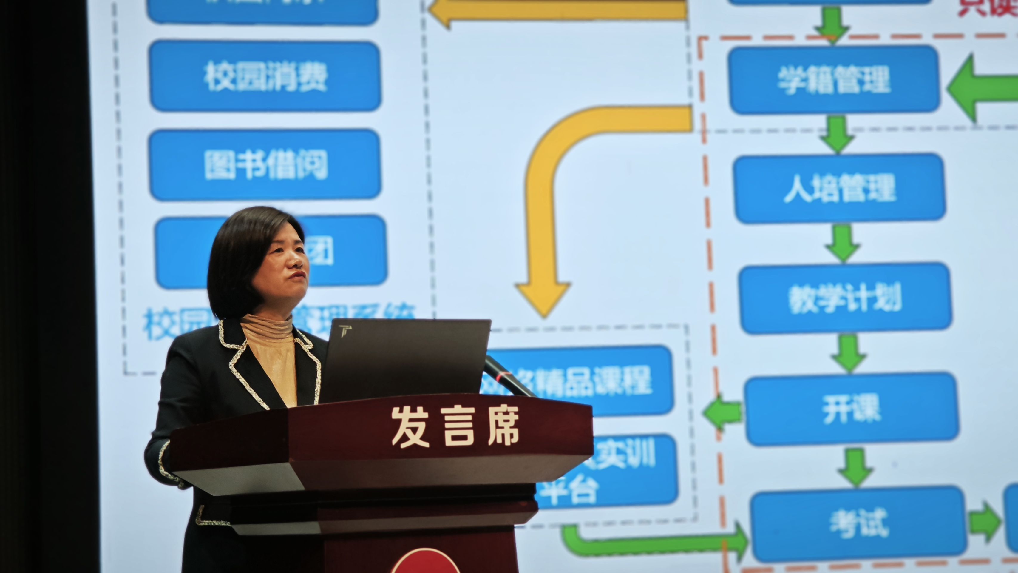 江蘇南京金陵高等職業技術學校副校長、正高級講師蘇婭就《信息化助推教學管理的實踐與思考基于教診改的視角》進行研討,用信息化手段,輔助教學管理,生成大數據情況,為中職學校教學管理信息化提供建設思路。