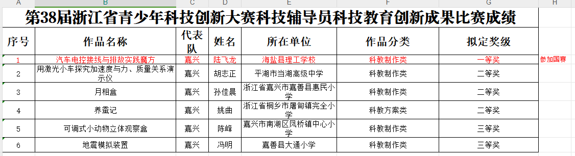 2024年4月14日,由省科協(xié)、省教育廳、省科技廳、團(tuán)省委共同主辦的第38屆浙江省青少年科技創(chuàng)新大賽圓滿落幕。在這場匯聚了眾多創(chuàng)新成果的盛會上,海鹽縣理工學(xué)校陸飛龍老師憑借其作品《汽車電控接線與排故實踐魔方》脫穎而出,榮獲科技輔導(dǎo)員科技教育創(chuàng)新成果比賽一等獎,并成功晉級國賽。