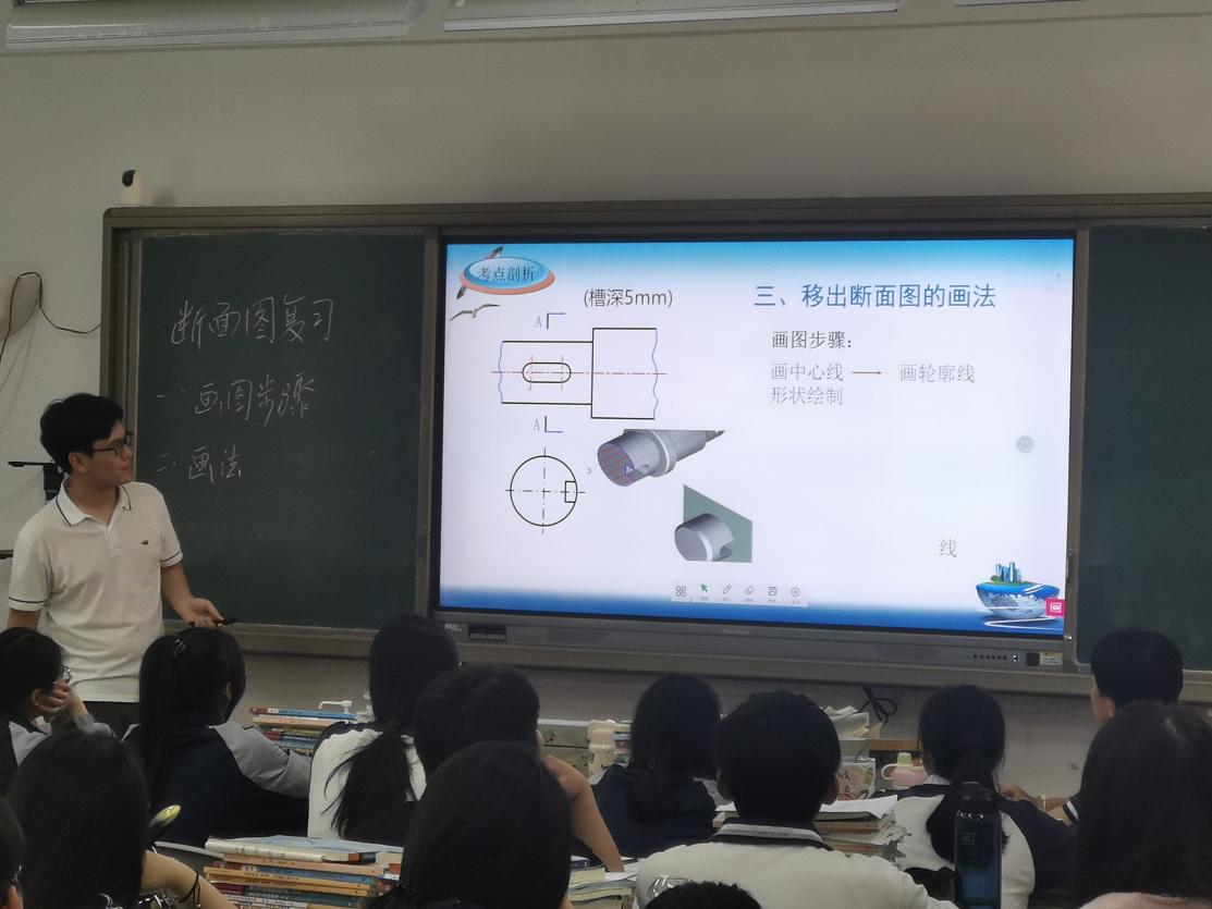 永嘉縣職業教育中心的楊挺老師帶來《斷面圖》復習課,楊老師通過考點分析、易錯題講解、斷面圖的一般畫法、斷面圖的特殊規定畫法、鞏固練習五個任務開展本節課的教學,培養學生自主思考的能力,帶學生進行復習回顧,鞏固所學知識點。
