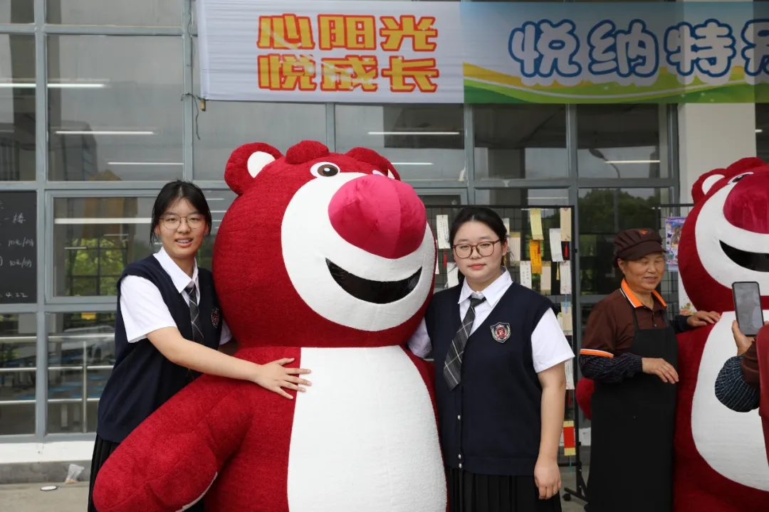 中午,“N年后的我”繪畫涂鴉活動的優(yōu)秀作品向全校師生進行展覽,同學(xué)們紛紛駐足賞析,時不時為創(chuàng)作者的靈感而驚喜,也為同伴的夢想而感動。滿含學(xué)生期許的“時空對話”書簽,字里行間流動著滿滿的能量,對未來的美好憧憬,一張張飽含心意的書簽由心理委員贈送給前來閱覽的學(xué)生,完成能量的傳播和夢想的接力。吉祥物草莓熊成為了流量密碼,她們的大方熱情,和學(xué)生的一次次擁抱溫暖而深情,治愈人心。