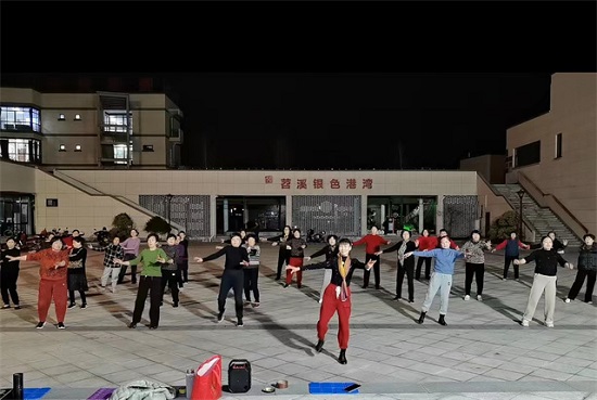 隨著文明建設的不斷深入,社區居民的業余文化生活日趨豐富多彩,每天晚上在健身操的音樂帶動下,大家動動筋骨,廣場舞就逐漸成為社區一道亮麗的風景線。(周亞)