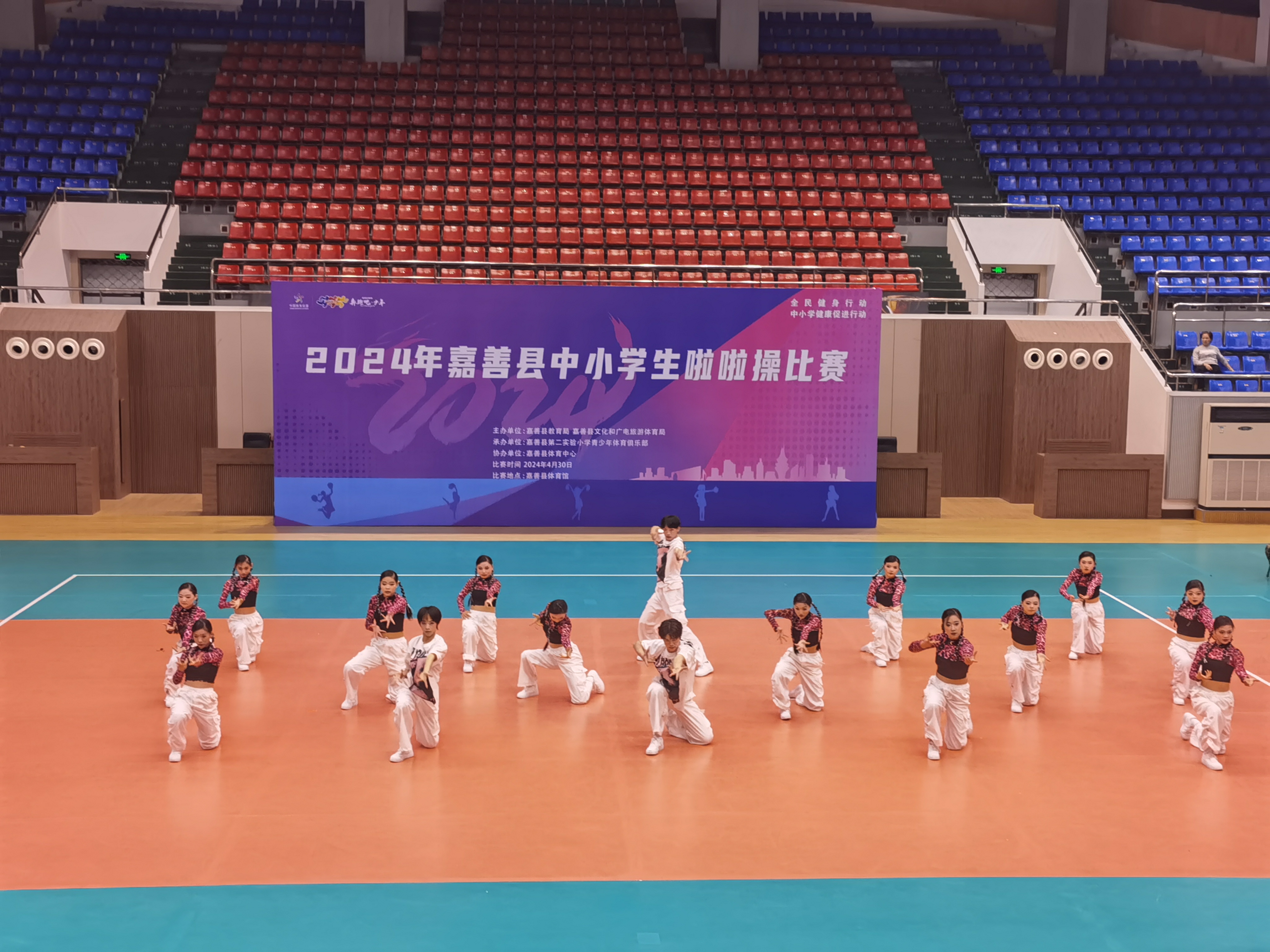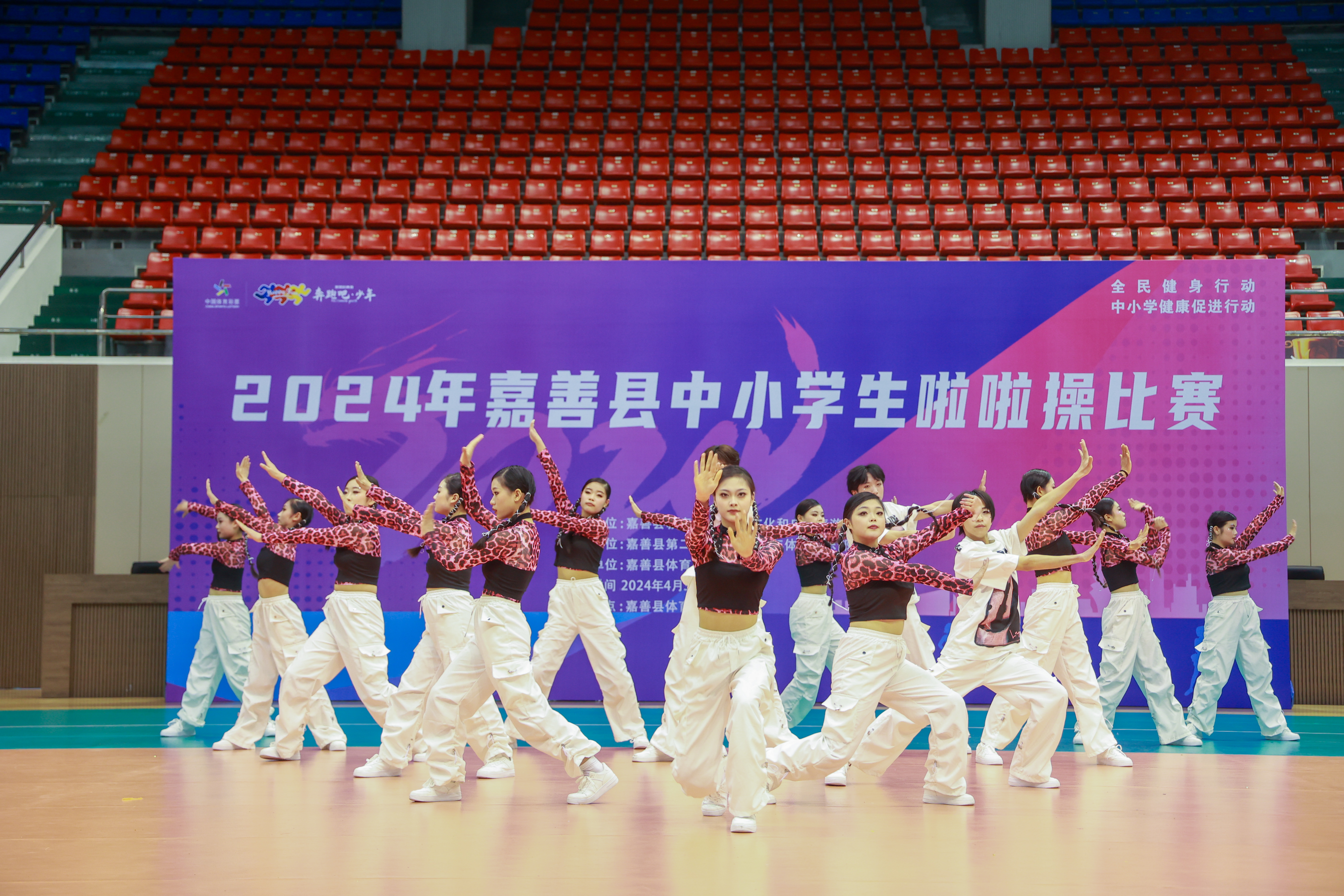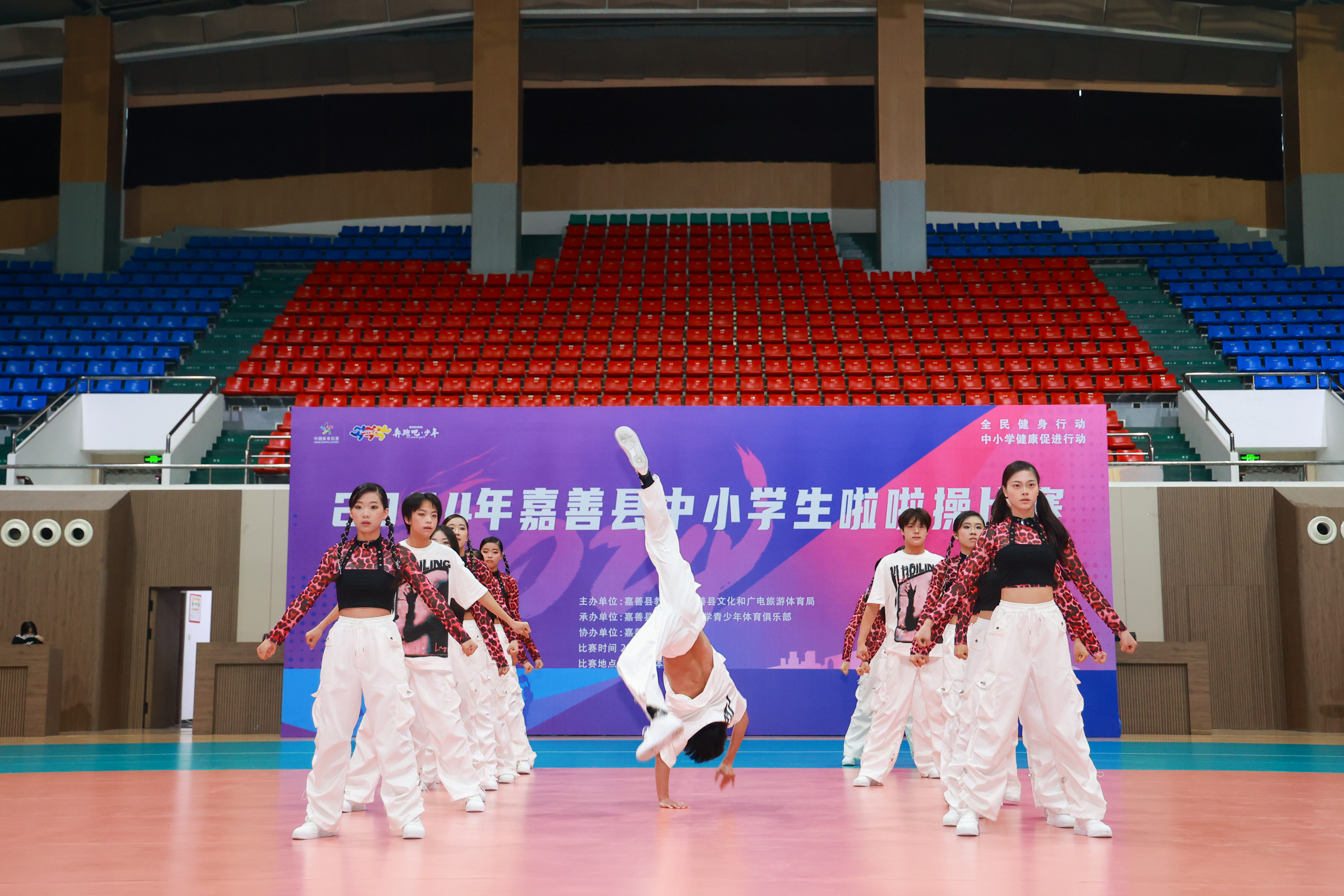 比賽現場,青春的氣息在空中彌漫,激情的火花在舞臺上綻放。小將們活力四射,自信從容,隨著動感的節拍,搖曳著青春的舞步,揮動著整齊的手勢,變幻著多彩的隊形,展現了力與美的融合,剛與柔的碰撞,青春與激情起飛,炫酷與活力盡顯,旋轉、跳躍、空翻、托舉……為大家呈現了一場精彩的視覺盛宴。