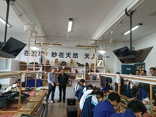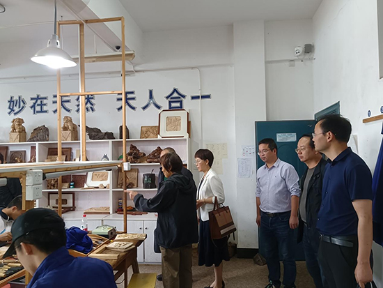 俞忠毅一行實地考察了木雕、汽修、服裝等專業實訓室,并參觀了校內的民間工藝精品館,詳細了解了嵊州市職業教育中心的辦學情況、重點工作、專業建設和特色做法等,聽取了學校近年來的辦學成果和在辦學過程中遇到的困難,對學校高水平專業建設、高技能人才培養、對接地方產業深化產教融合等方面的工作成效給予了充分的肯定。