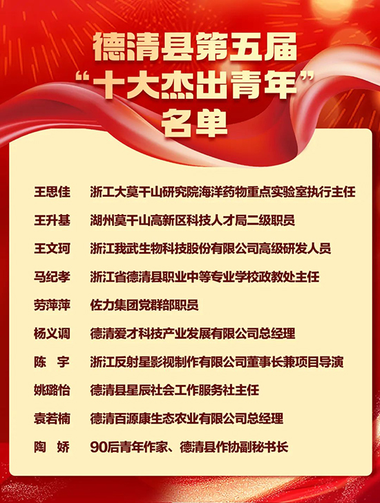 近日,德清縣第五屆“十大杰出青年”名單揭曉,德清職業中專馬紀孝榮獲“十大杰出青年”稱號。“十大杰出青年”是德清縣青年的最高榮譽,旨在選樹和宣傳德清縣各領域優秀青年典型,引領全縣青年為德清發展注入青春智慧和力量。馬紀孝榮獲此殊榮充分體現了他在德清教育系統的優異成績和廣泛影響力。