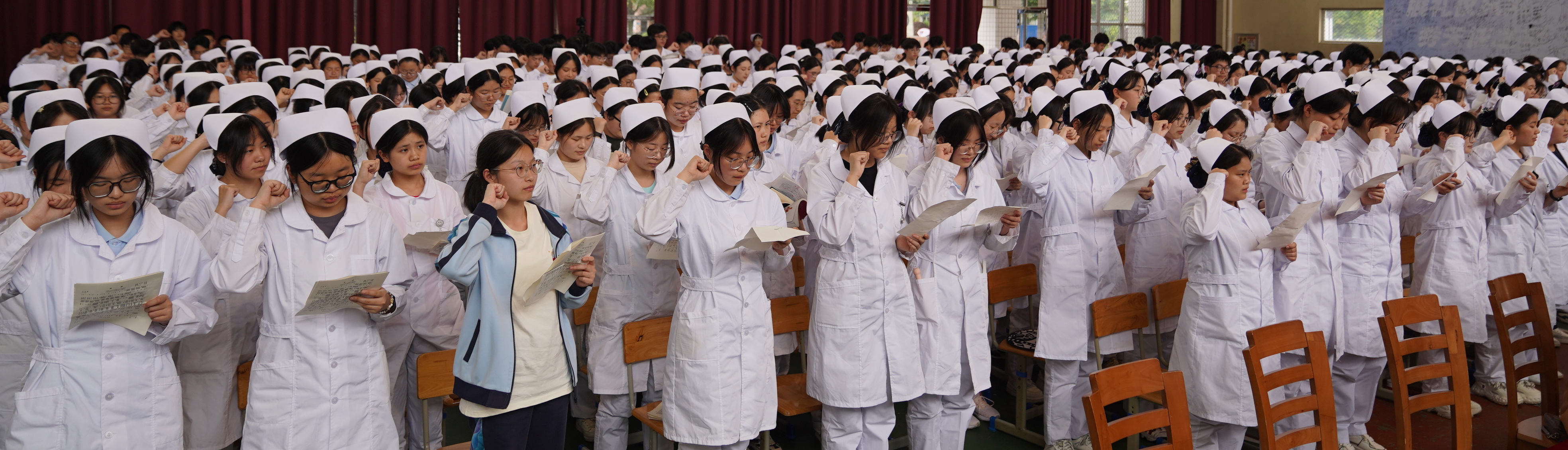 校長徐春燕在護士加冕儀式上寄語準護士們,堅定信念,珍惜當前的學習機會,豐富自身學識和素養,汲取他人的有益經驗,提高競爭力,為今后進入大學以及步入工作崗位打下堅實的基礎。