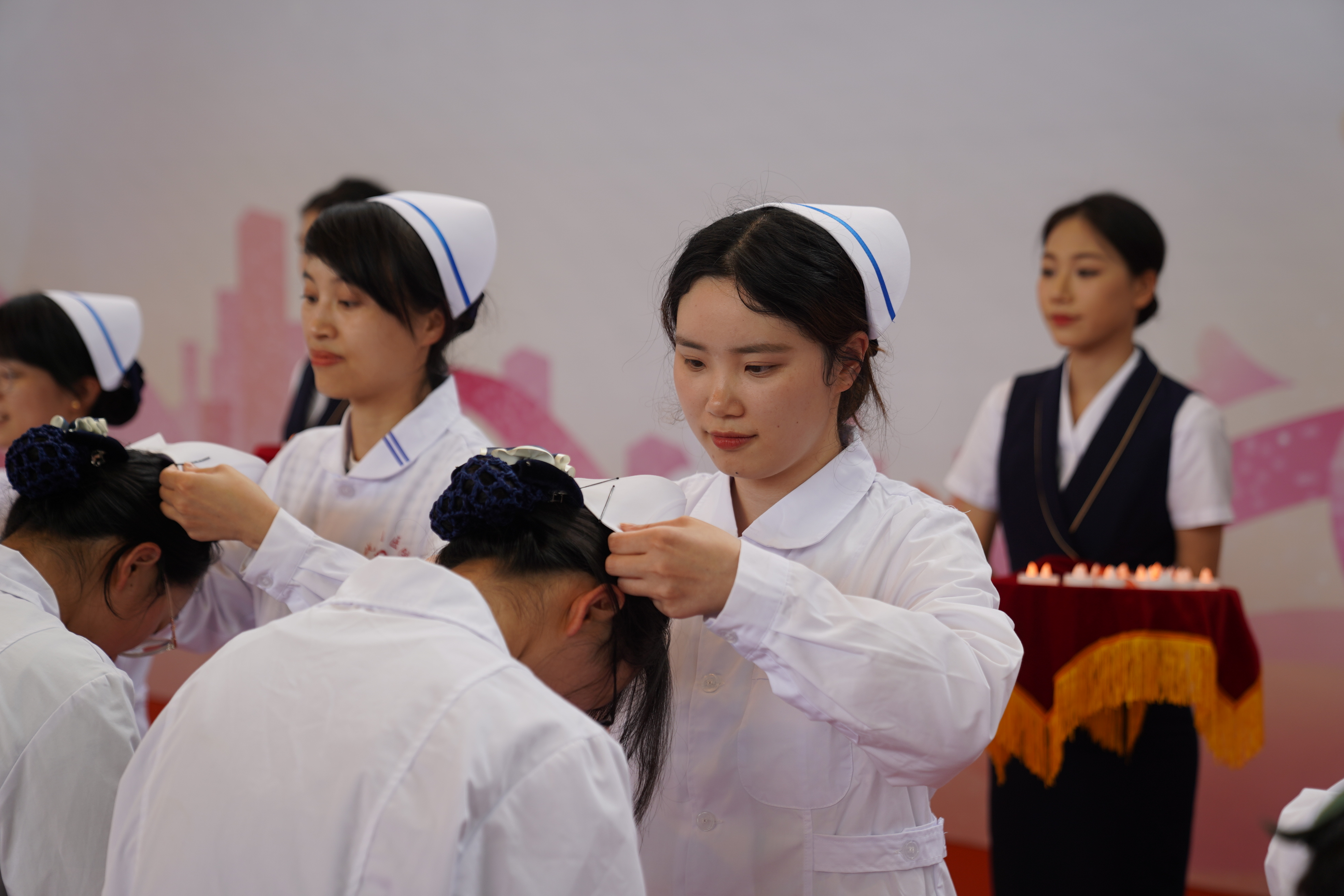 曾有11年護師工作經歷的李兆晶老師感觸良多。“我想起了自己曾經做護師時被授帽的場景,這一刻,我想代表著一份愛的接力和使命的傳承。”