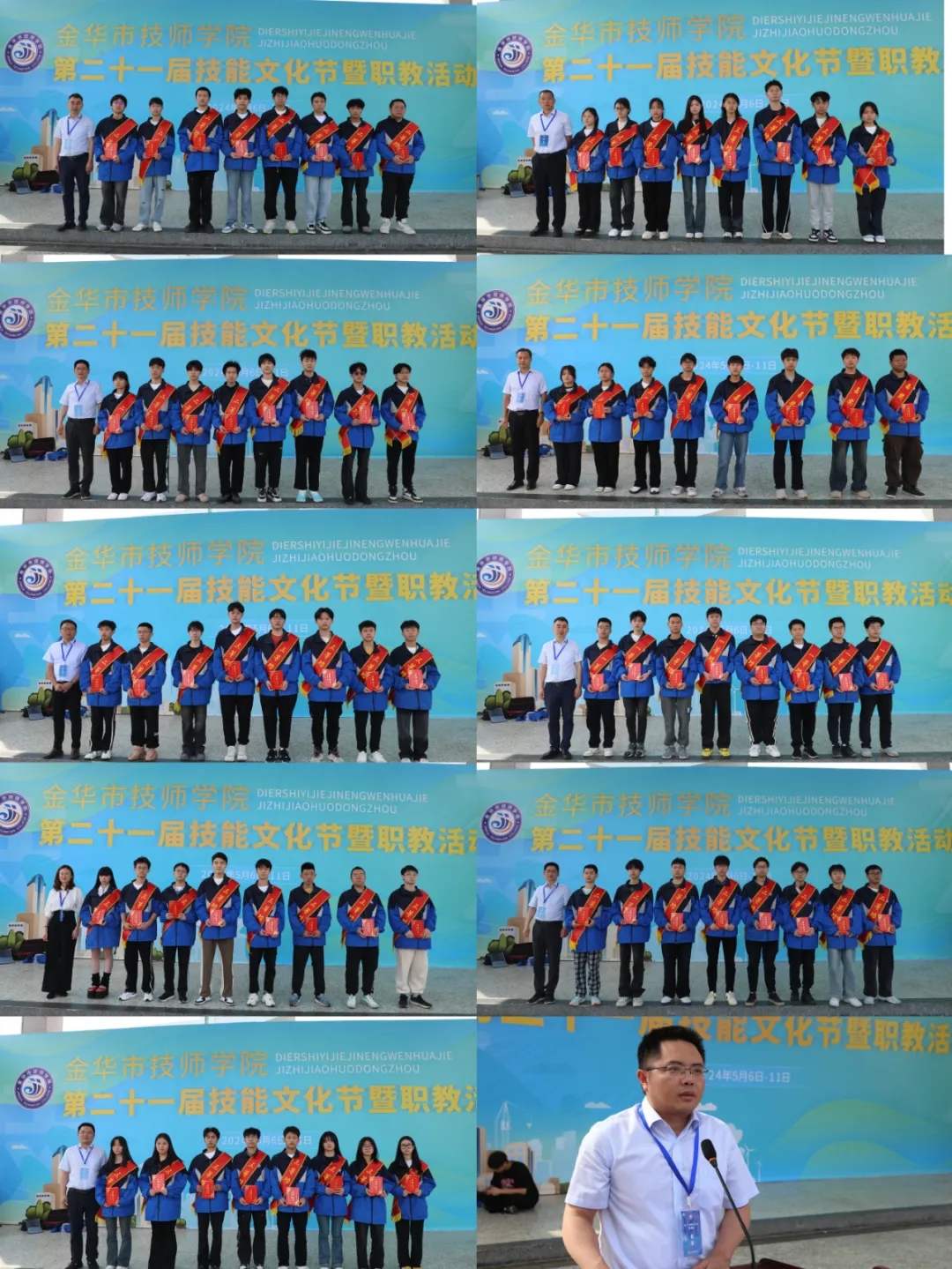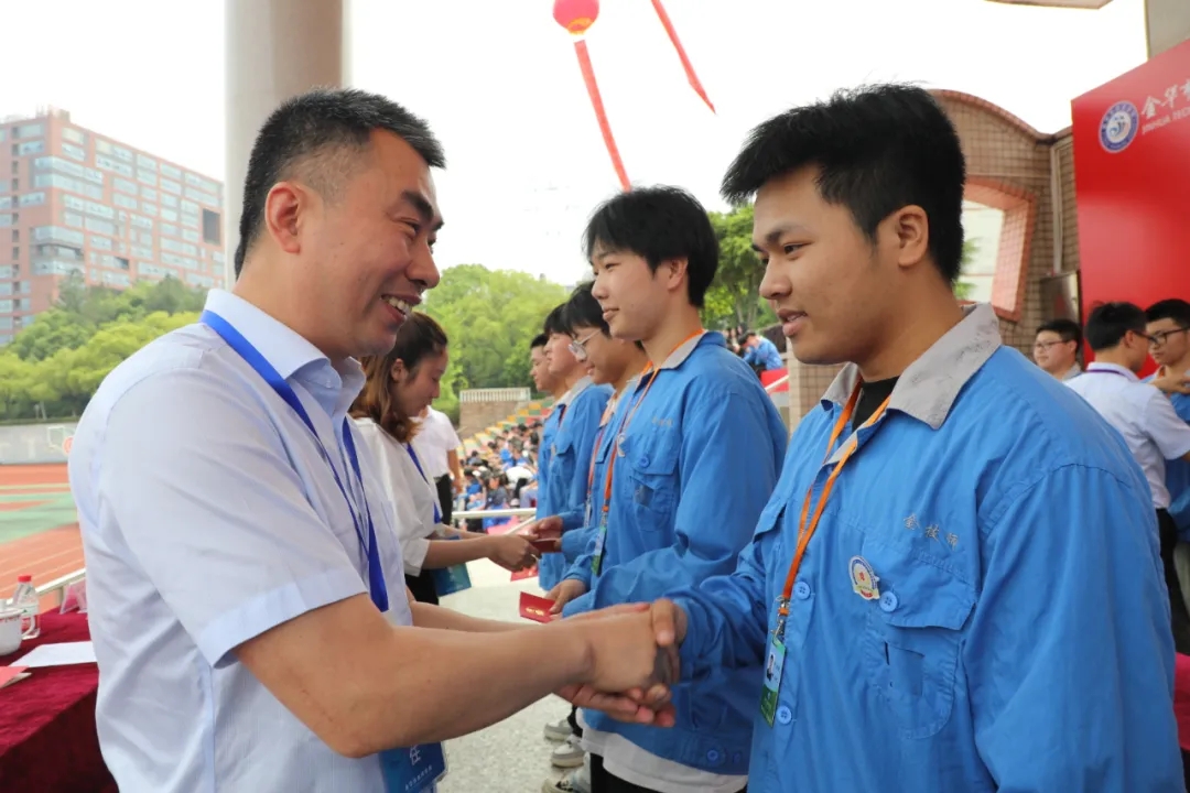技能比武展風采,以賽促練礪精兵。過去的2023年,金技人在賽場揮灑汗水,收獲掌聲,成就自我。學校黨委委員朱勇宣讀“2023年度師生技能競賽獲獎”表彰文件。校領導為全體技能記功學生頒獎。