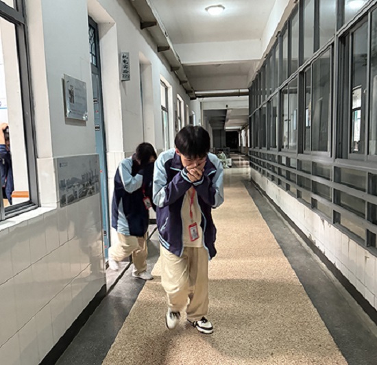 晚上8時45分,隨著警報聲響起,疏散演練正式開始。晚自習值班老師迅速組織學生有序離開教室,并在本樓層彎道處做好疏散指揮。各班學生按指定逃生路線安全、有序、快速地離開教學樓,安全到達駱駝廣場。隨后各班迅速清點人數(shù),并層層上報。