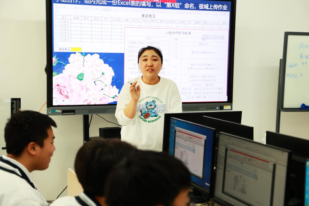 浙江豪情汽車工業學校的吳肖肖老師進行了《Excel函數復習》的講解。吳老師以“誰是歌王”引入本課,通過小組合作的形式,結合“小組合作積分標準”,利用函數完成Excel表格的填寫。課堂氣氛活躍,學生積極性很高。