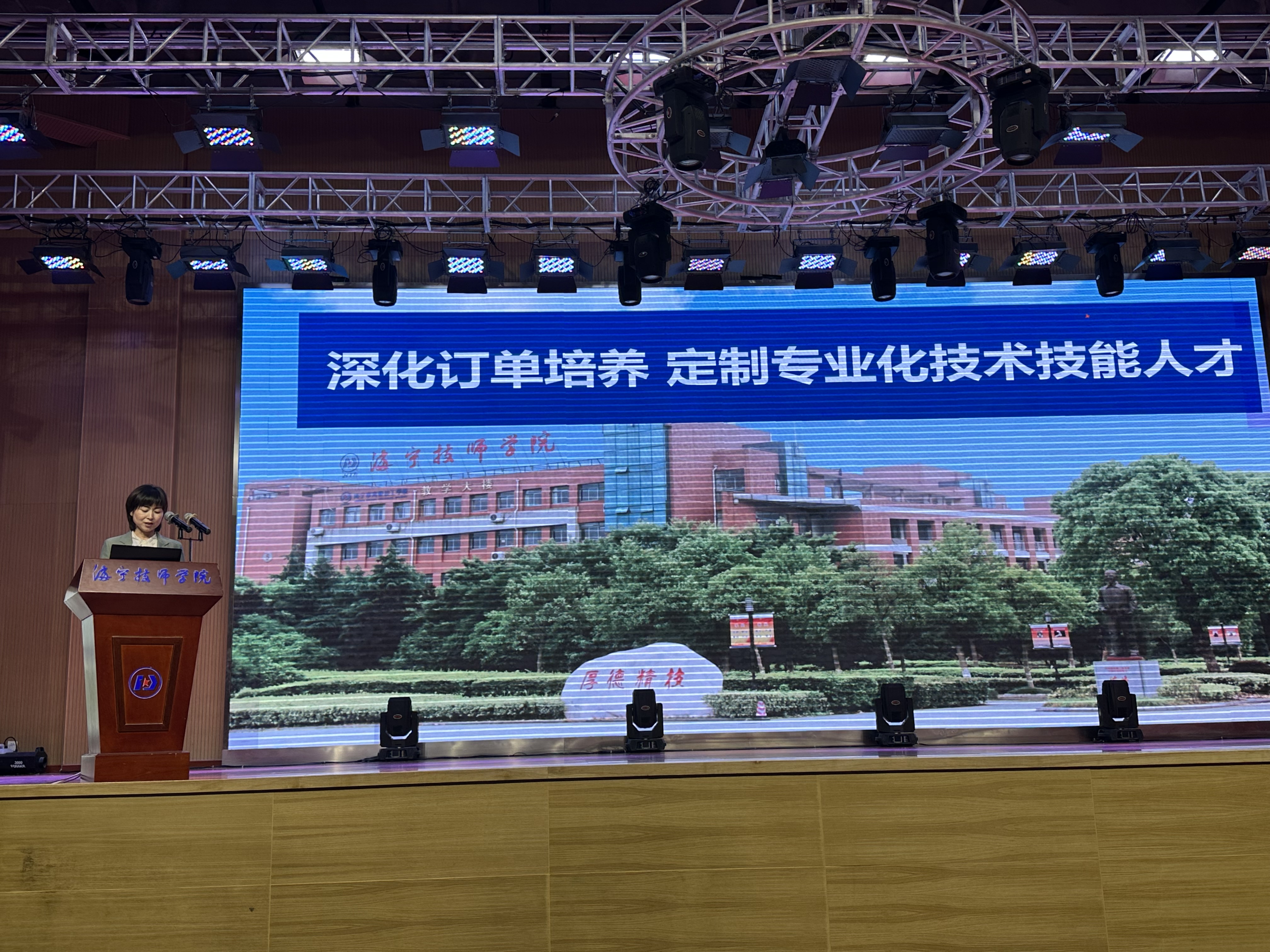 為進一步推動職業(yè)教育創(chuàng)新與發(fā)展,深化工匠精神的培育,海寧技師學院于5月11日隆重舉辦了以“匠造人才培養(yǎng)模式探索 打造職業(yè)教育創(chuàng)新發(fā)展”為主題的“潮城英才月”政校企行與家長面對面活動。海昌街道辦事處副主任錢國平,海寧技師學院黨委書記、院長陳海鋒,海寧市先進半導體與智能技術研究院科技辦主任張海斌等嘉賓以及海寧技師學院智能制造系集成電路專業(yè)群8個班級的全體同學及家長朋友們參加活動。此次活動旨在通過政府、學校、企業(yè)、行業(yè)四方聯(lián)動,共同探討高素質(zhì)技能型人才培養(yǎng)的新模式,同時促進家校協(xié)同,為學生的生涯發(fā)展搭建更廣闊的平臺。